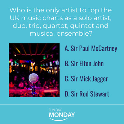 QUIZ QUESTION: Who is the only artist to top the UK music charts as a solo artist, duo, trio, quartet, quintet, and musical ensemble?